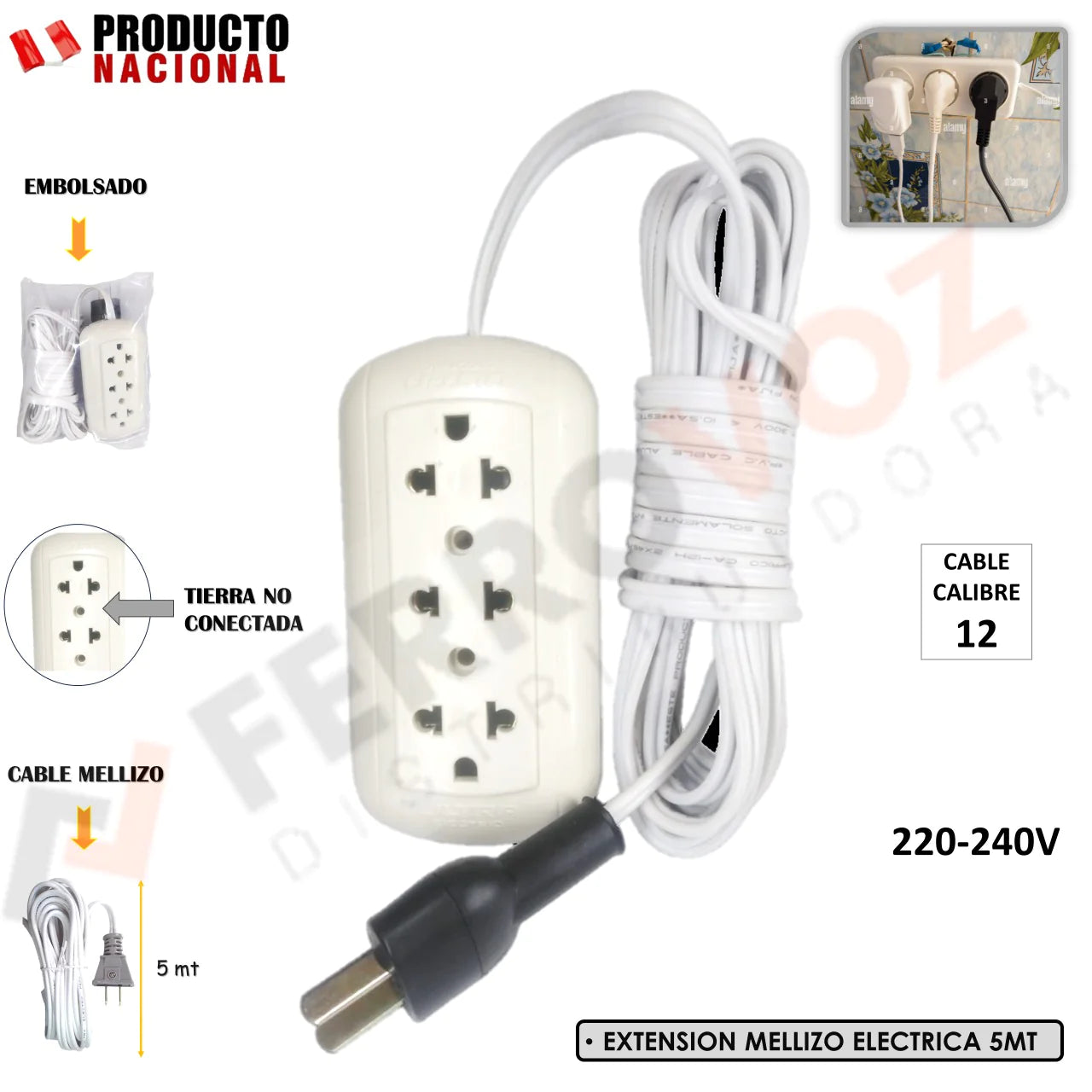 EXTENSION MELLIZO BLANCO 5 MT. CAL#12 "NACIONAL"
