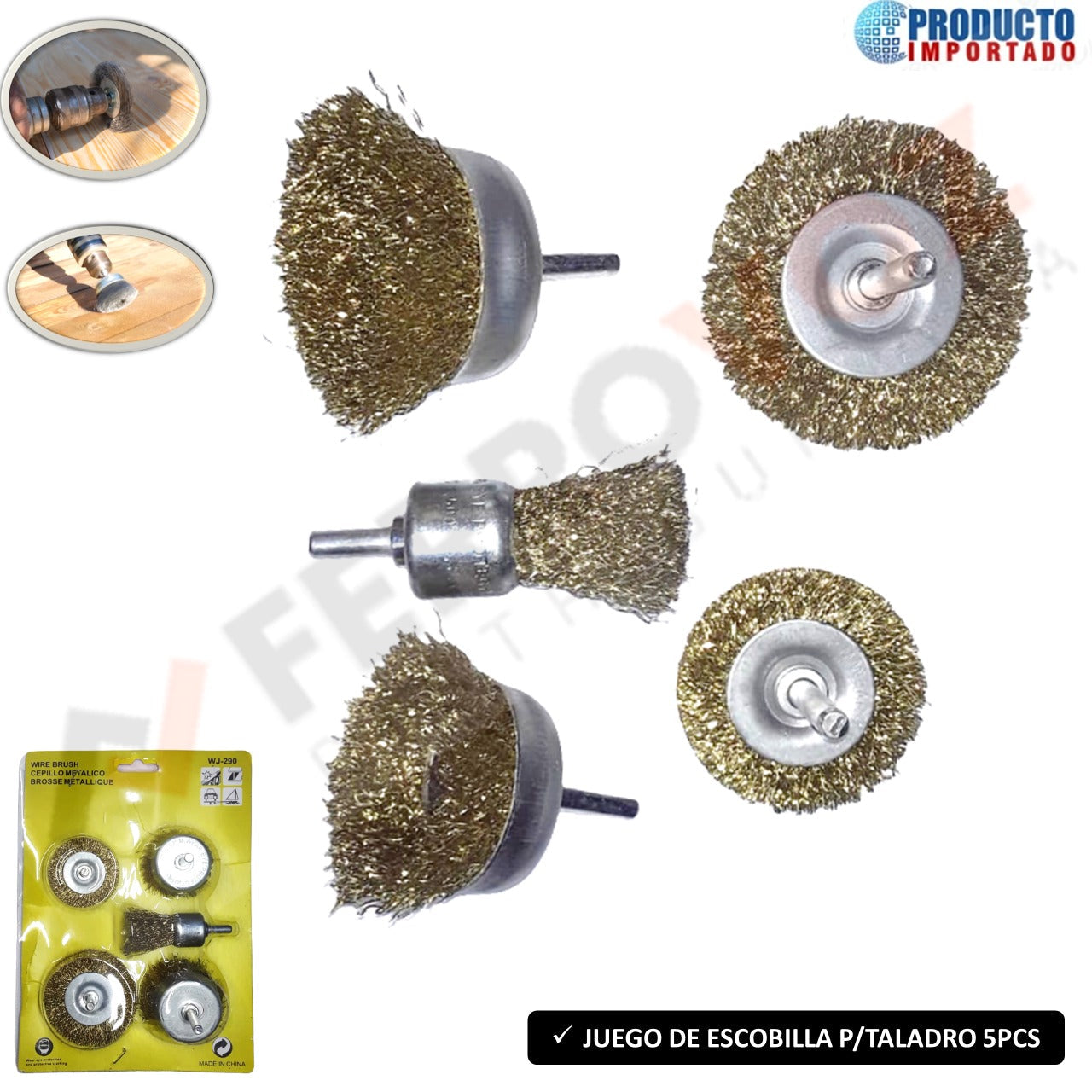 JUEGO ESCOBILLAS TALADRO 5PZS