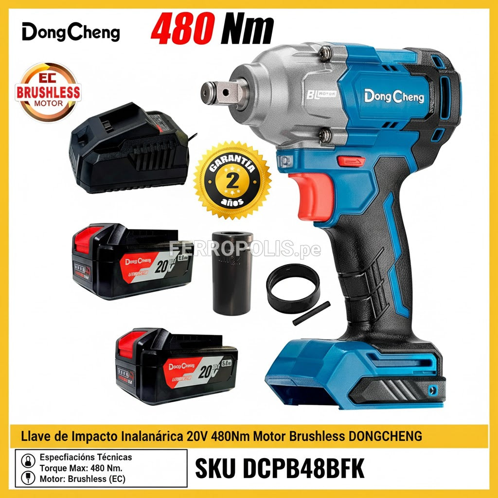LLAVE IMPACTO INALAMBRICA 480 NM CAÑO CORTO 1/2" 5 AH DONGCHENG