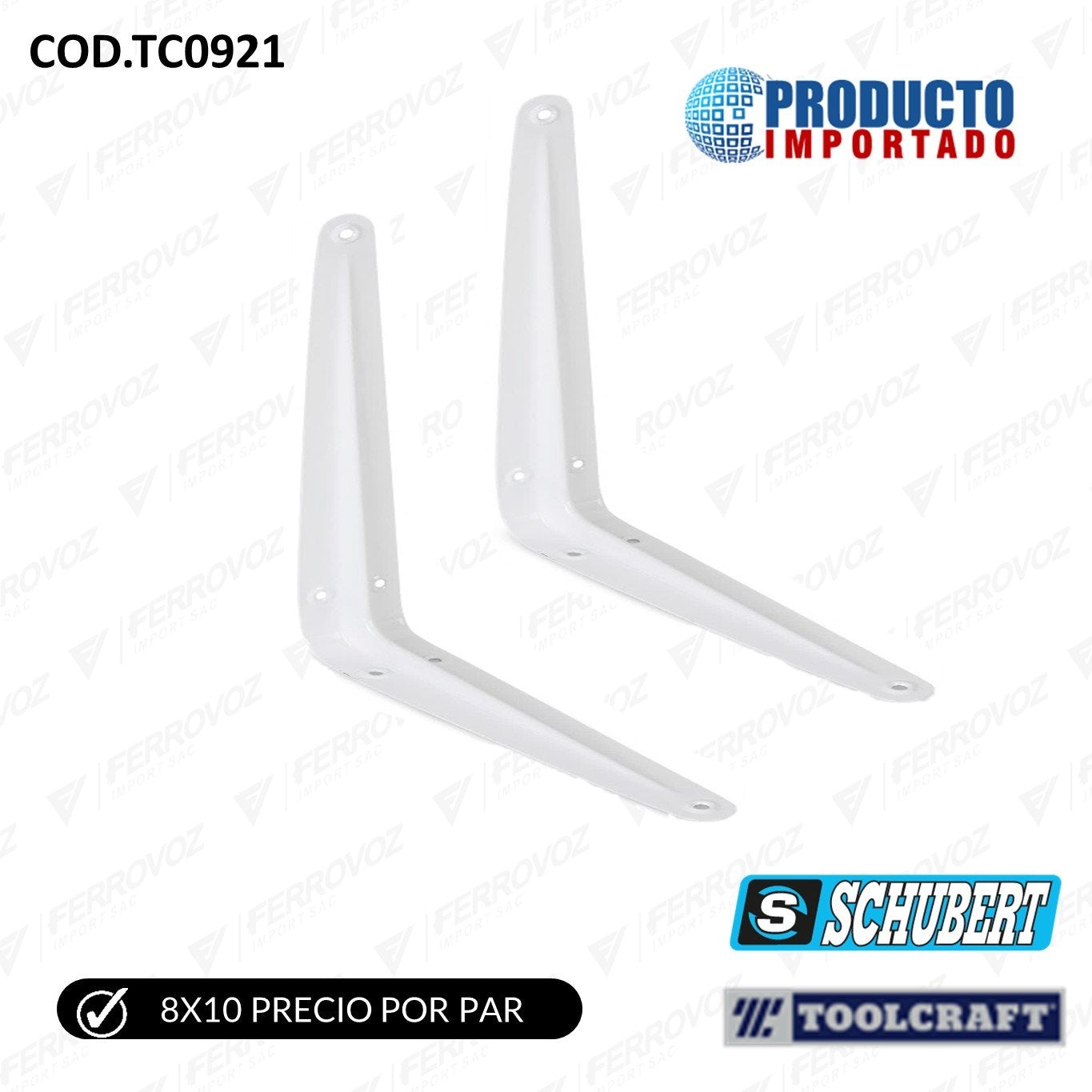PAR DE ANGULO ESCUADRA BLANCO LIVIANO 8" X 10" (INC. TORNILLOS)