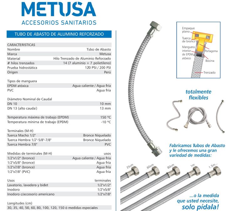 TUBO ABASTO ACERADO 1/2" X 100CM "METUSA"